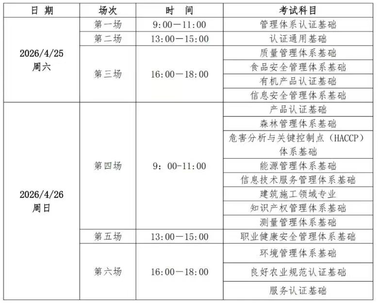 按照中国认证认可协会(以下简称CCAA)注册审核员全国统一考试计划,CCAA将于2026年4月25-26日举办2026年第1期全国注册审核员考试,现将相关事项通知如下: