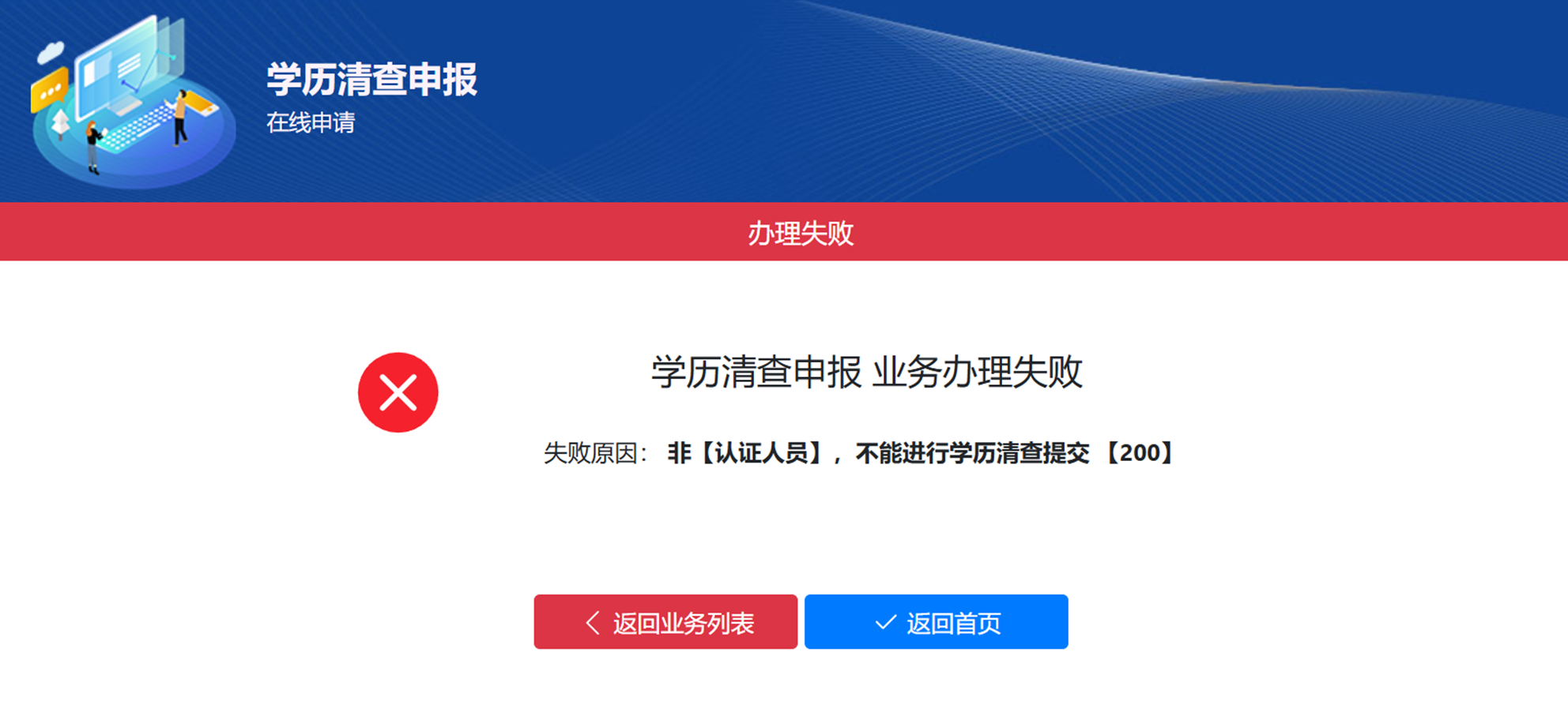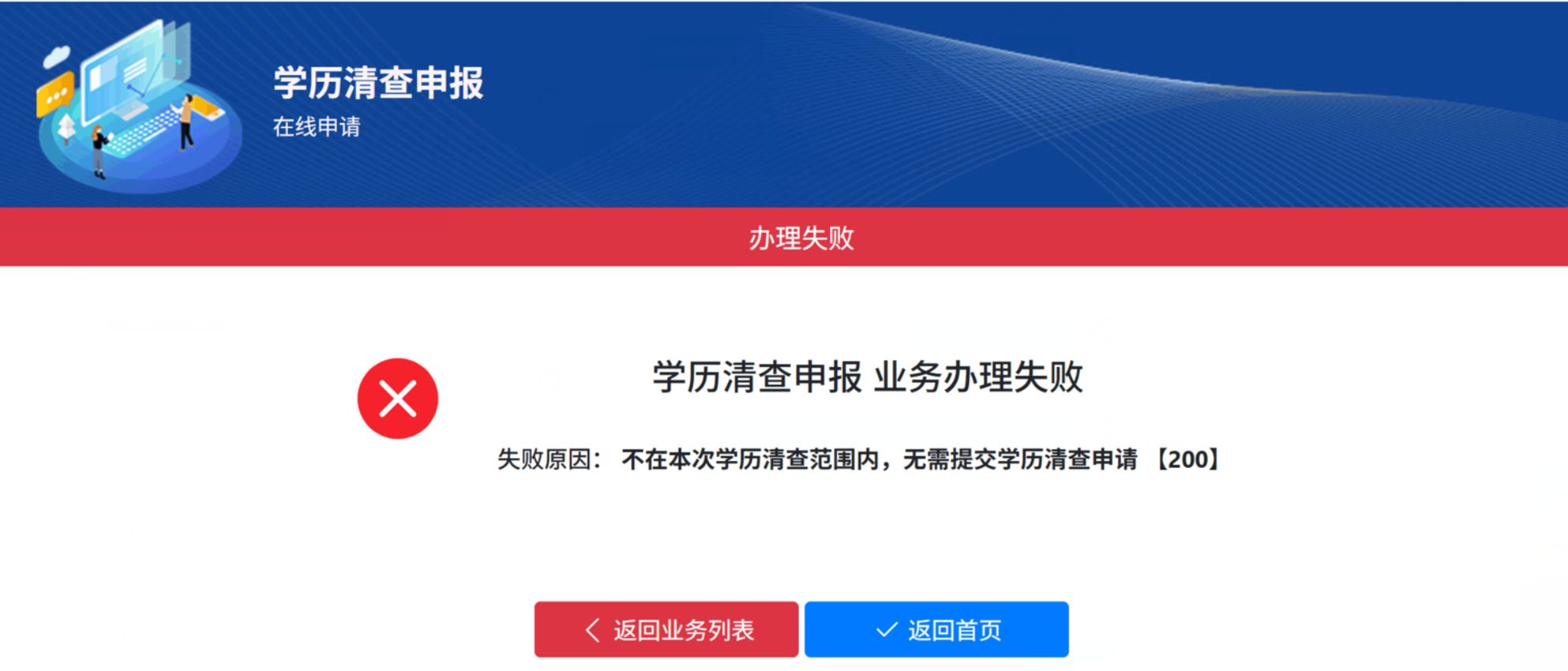 1.学历清查范围:本次教育经历专项清查行动范围为2023年1月1日-2025年12月31日期间首次取得注册证书的认证人员。不在此范围内人员点击“学历清查申报”时将弹出以下两种界面,即不在本次学历清查范围内,不需要提交。